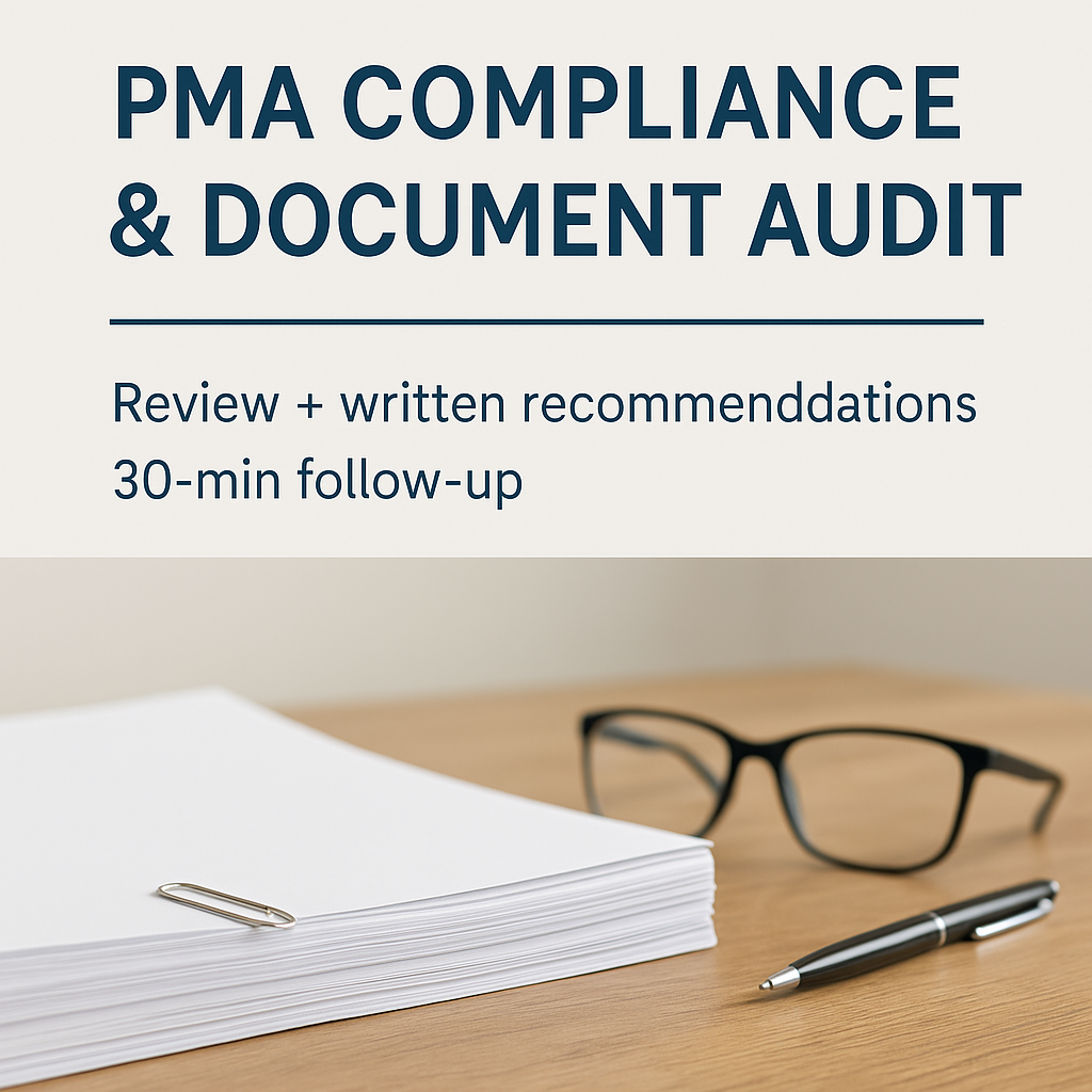 Many PMAs are vulnerable because they rely on incomplete, outdated, or poorly drafted documents. A professional review now can prevent costly legal issues later.